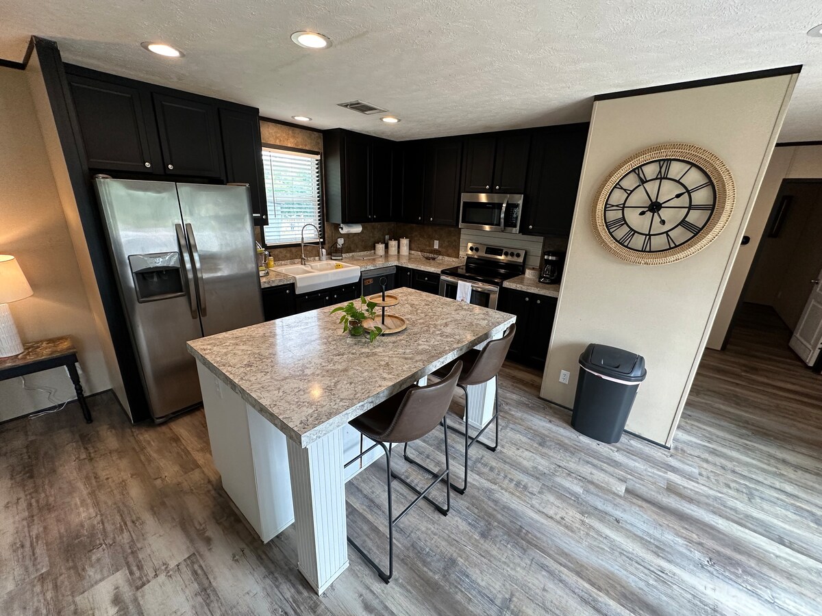 Take it easy at this unique and tranquil getaway. Full kitchen, walk-in shower, washer/dryer, cable TV, wifi, relaxing deck on the back, outside dining beside a peaceful Koi pond and waterfall. For those chilly evenings there is a fire pit for roasting hot dogs or toasting marshmallows or just relax in the Adirondack chairs on the patio. Sitting in the wicker rockers on the front porch you have a wonderful view of the farm pond and with any luck you will catch a glimpse of a deer or two.