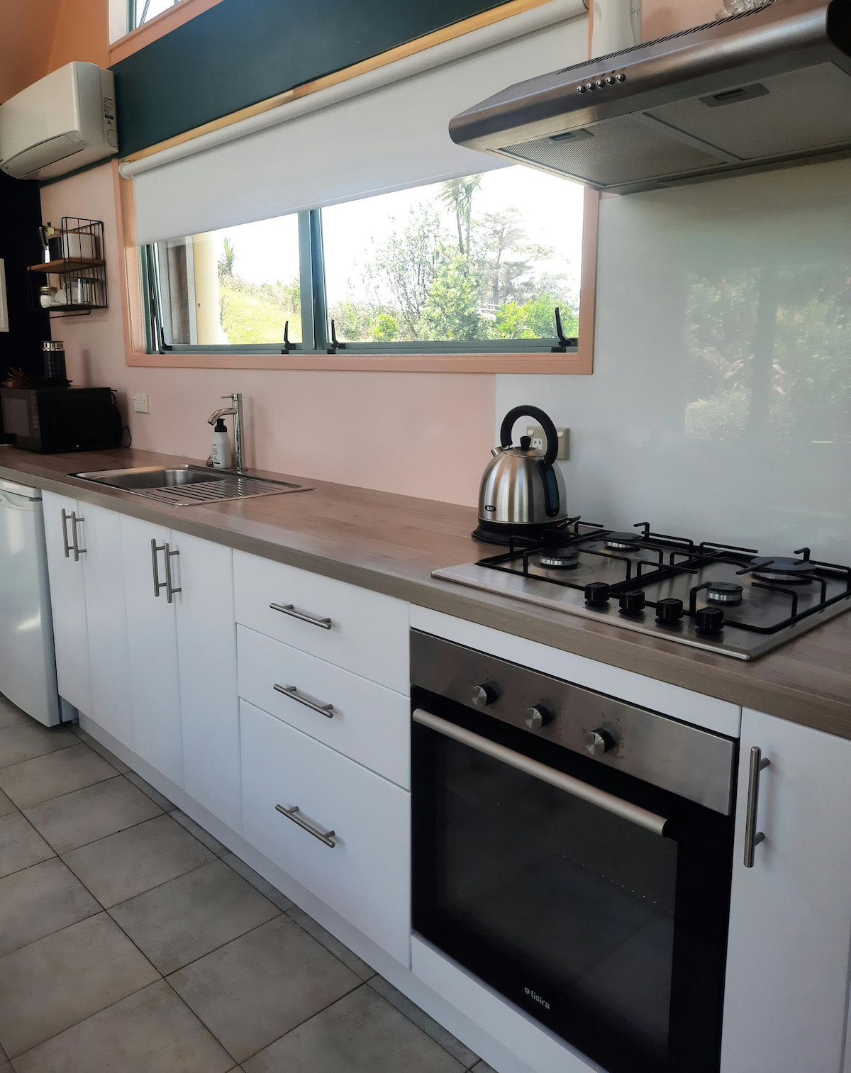 Disfruta de la zona tranquila. Escucha a todas las aves nativas, nada en la piscina, da un paseo por nuestra encantadora zona o simplemente relájate en la espaciosa cabaña con una bebida. En el interior, sube las escaleras de caracol hasta el acogedor dormitorio del entrepiso (ten en cuenta que está bajo allí). ¡Las escaleras únicas son del antiguo observatorio de estrellas en Titirangi (el maunga/montaña local)! El sofá cama en el salón tiene capacidad para 2 personas. No hay cocina, pero hay una cocina americana con microondas, tostadora y hervidor de agua.