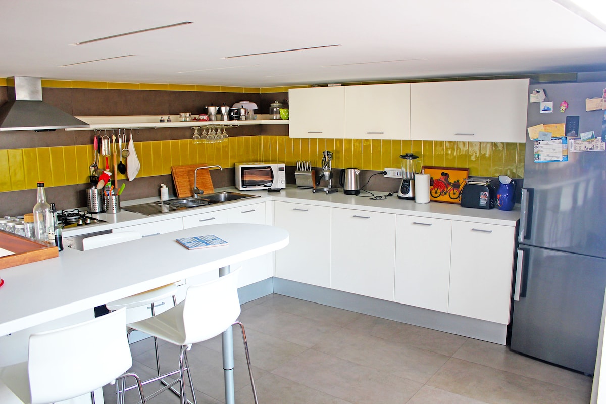 Departamento luminoso de 100 metros cuadrados recientemente renovado, situado en el tercer piso de un edificio antiguo sin ascensor, situado en el corazón de los barrios españoles, a pocos pasos del centro histórico. La casa consta de: 3 habitaciones dobles con baño privado, cocina/sala de estar común, lavandería con lavadora disponible para los huéspedes, terraza equipada con 130 metros cuadrados con cocina incorporada y acceso directo desde la casa y vistas a los tejados de Nápoles, el Vesubio y la Certosa de San Martino.
