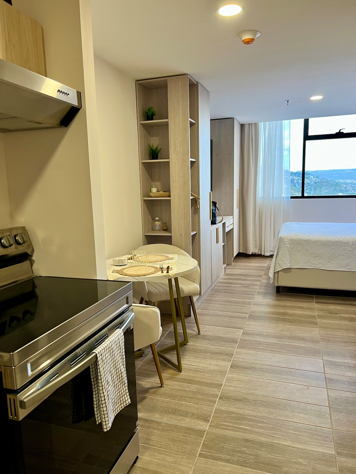 Este elegante monoambiente combina estilo, confort y funcionalidad, con una vista panorámica y ubicación privilegiada en el corazón de la ciudad, de fácil acceso desde múltiples puntos. Su diseño versátil lo hace ideal para viajeros de negocios, profesionales, estudiantes o creativos que buscan un espacio moderno e inspirador. Perfecto para trabajar, crear o descansar, ofrece una experiencia única de bienestar y modernidad en una de las zonas más exclusivas.