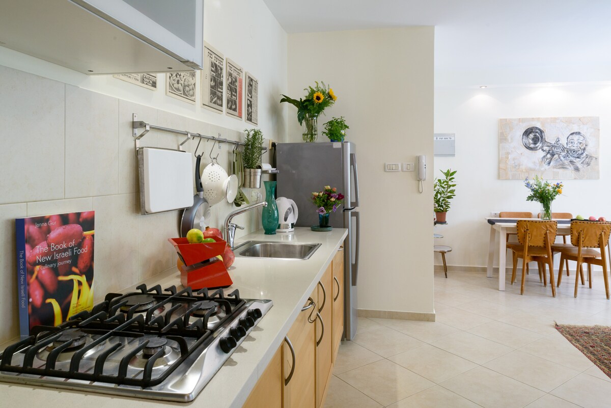 Ubicado en el antiguo distrito norte de Tel Aviv, nuestro apartamento en la calle Yehushua Ben-Nun se encuentra en una zona serena de la ciudad con amplias aceras y exuberantes bulevares verdes, bordeados de frondosos árboles de Ficus. Con pequeñas tiendas locales y cafeterías en la esquina para que las descubras, y a solo unos pasos de la calle Dizengoff, esta ubicación ofrece una variedad de bares y restaurantes del vecindario.