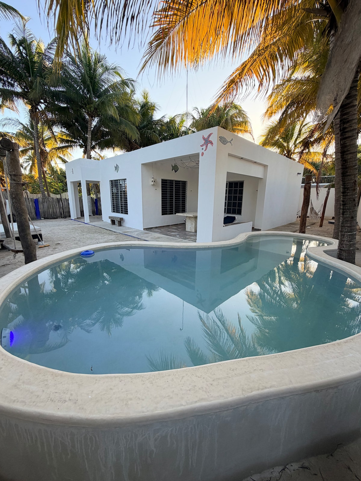 Villa Lujosa decorada vibra "Tulum" con acabados y muebles de lujo. Perfecta para unas vacaciones frente al mar Disfruta la terraza y una pequeña piscina para refrescarte saliendo del mar. Duerme la siesta en una hamaca con una espectacular vista desde la habitación principal y disfruta el sonido de la naturaleza. No cobramos energía eléctrica y tenemos generador de energía para emergencias, así que nunca te quedaras sin energía y sin aire acondicionado, que por cierto tenemos en todos lados :)