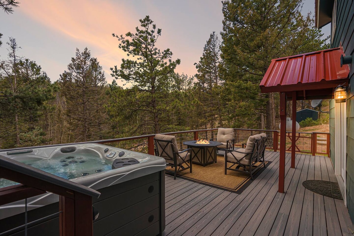 Welcome to your historic mountain retreat at Eagle Ridge! The cabin is a stunning 360 sq ft handcrafted woodwork home situated on a gated 43-acre property with access to private walking trails and panoramic views of Pikes Peak that will take your breath away. The peaceful and quiet atmosphere of the cabin instantly enables one to forget about the busyness of life and rest and/or focus on a birthday, anniversary, or personal retreat. The hot tub is filled with fresh water for every guest.
