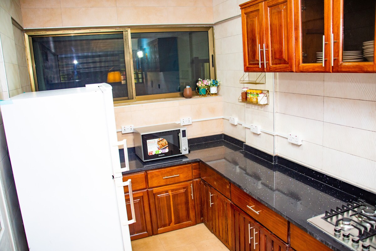 Your Home Away from Home: - Fully furnished hall and chamber with WiFi, 24/7 electricity, and hot baths - Safety features: smoke detector, first aid kit, and secure gated compound - Modern kitchen with gas stove, fridge, microwave oven with grill, blender, kettle, and washing machine - Relax with a flat-screen TV and enjoy home-cooked meals with provided essentials (salt, pepper, oil) - Additional perks: hair dryer Perfect for: - Short-term and long term stays - Business trips to Tema