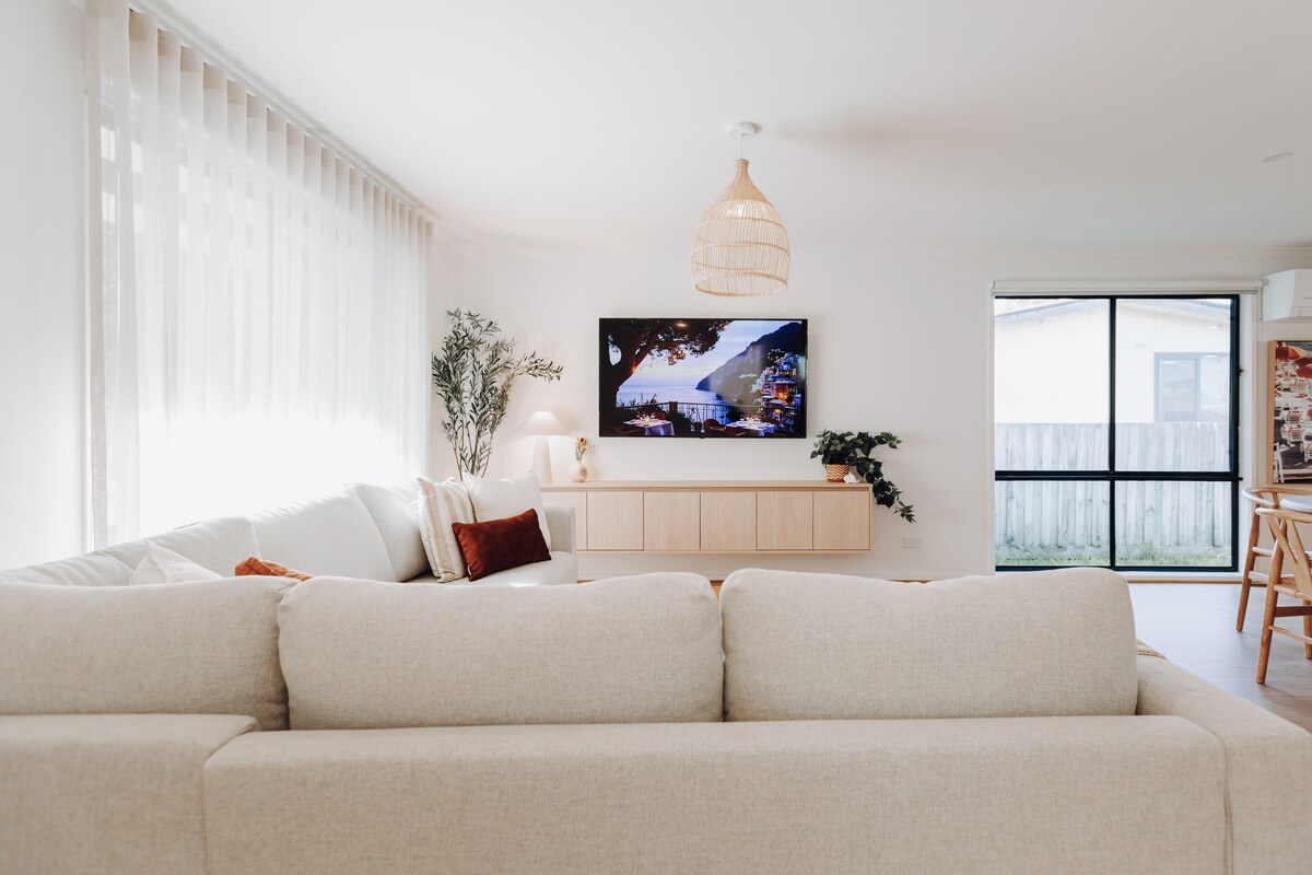 Te damos la bienvenida a SaltHouse, un moderno refugio de playa minimalista enclavado entre las dunas y las sorprendentes orillas costeras de Surf Beach Phillip Island. Perfecto para parejas y frente a la playa, este espacio diseñado arquitectónicamente te permite disfrutar de la vida sin prisar, disfrutar de largos días de verano y cálidos acurrucamientos junto a la chimenea de invierno, todo a los sonidos de Bass Straight. Pasea por la playa apta para perros, sumérgete en las frescas olas de agua salada y simplemente vuelve a conectarte. Desenga la paz IG@salthouseretreat
