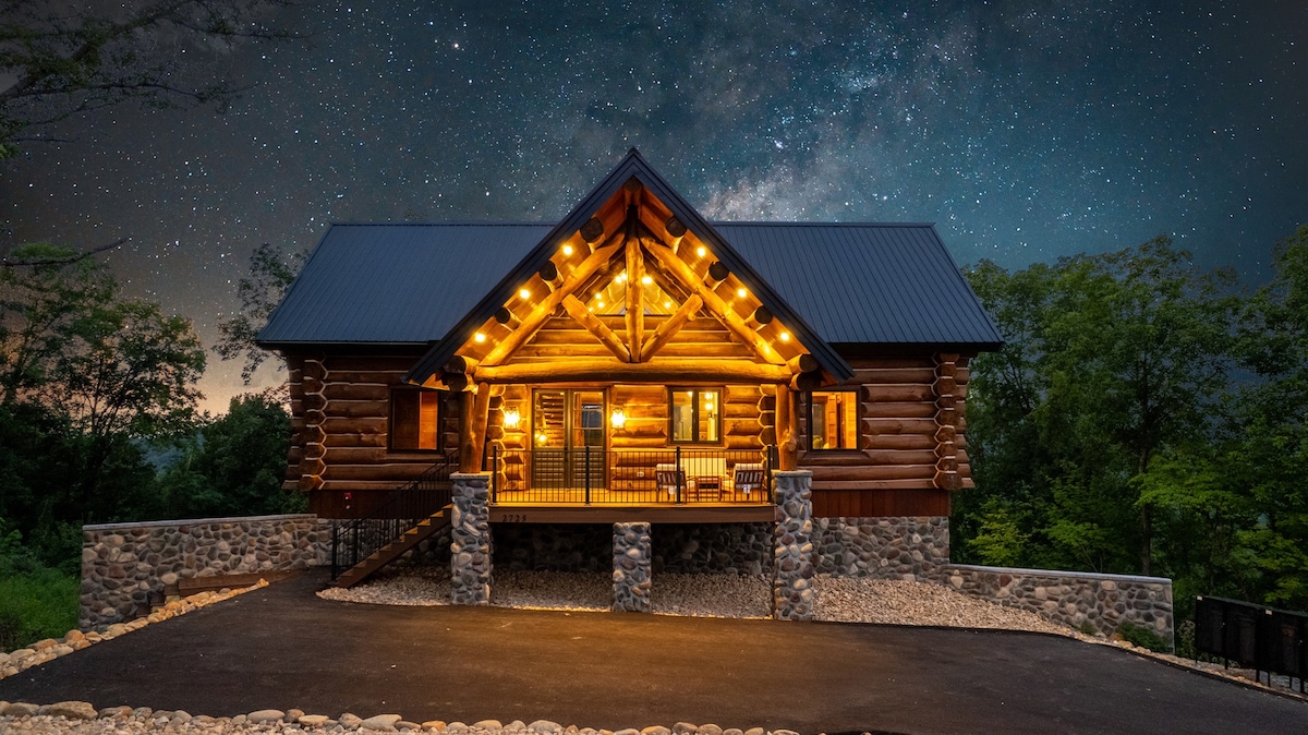 IG/FB/TikTok: SixDiamondsCabins. ¡VISTAS! A solo minutos de todo: villa de LUJO PERSONALIZADA EN LA CIMA DE UNA MONTAÑA diseñada por arquitectos de renombre. Más de 2 acres, más de 5800 pies cuadrados y muchas cubiertas/solárium frente al monte LeConte. JACUZZI para 7 personas nuevo, SALA DE CINE con proyector de 100 pulgadas, 7 televisores, SALAS DE JUEGOS con piscina, Pac-Man, ping-pong, Golden Tee, pinball, Buck Hunter y Cornhole, mazmorra de Harry Potter, música bluetooth, 3 FOGONES/CHIMENEAS, camas cómodas, wifi de alta velocidad, aparcamiento y carreteras fáciles.
