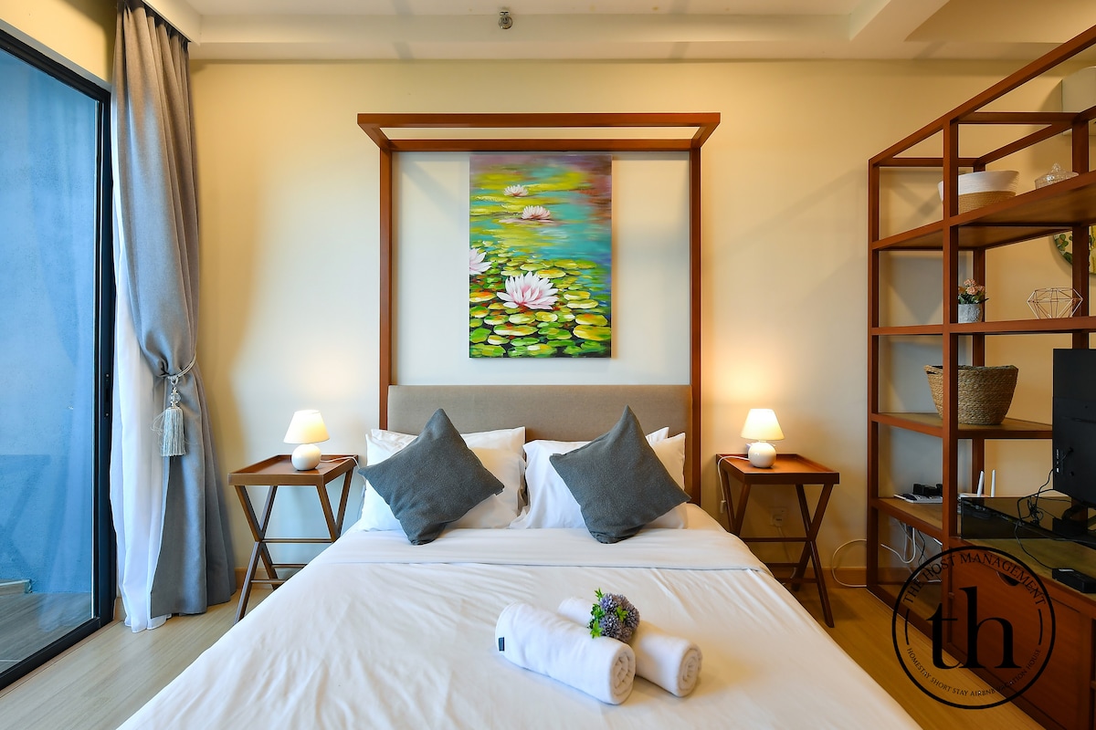 Este apartamento estudio «hyggelig» cuenta con una sala de estar y un dormitorio de concepto abierto con una cama «queen», puertas correderas a un balcón con impresionantes vistas al mar de China Meridional y un pequeño dormitorio individual separado. Una cocina bien equipada (no se permite cocinar) y un baño moderno proporcionan comodidad diaria. Los detalles incluyen una cesta de picnic para las salidas a la playa y una esterilla de yoga para estirarse tranquilamente. Ideal para parejas o familias pequeñas que buscan una escapada acogedora y relajante junto al mar con un encanto único 🐚🌊🌴