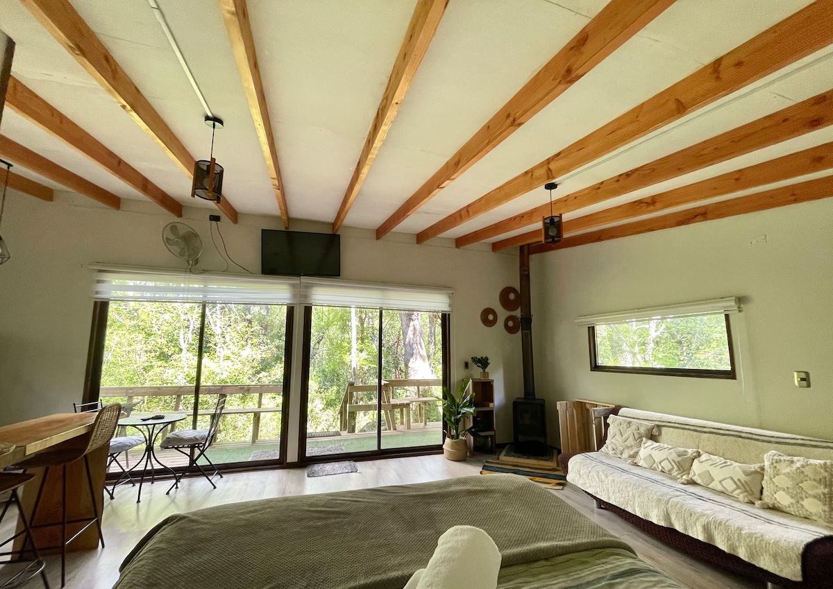 Relájate en esta escapada única y tranquila.Inmersa dentro del bosque nativo, como en un cuento, viviendo la naturaleza como una unidad podrás ver las estrellas y la luna en la noche desde tu cama… si el tiempo lo permite. Disfrutar de la lluvia y, en ocasiones, nieve en todo su esplendor! Cuenta con tinaja privada! La tinaja tiene valor aparte (no está incluido en el valor de la cabaña - costo $50.000 por vez que se utiliza, 2 usos por 90.000)