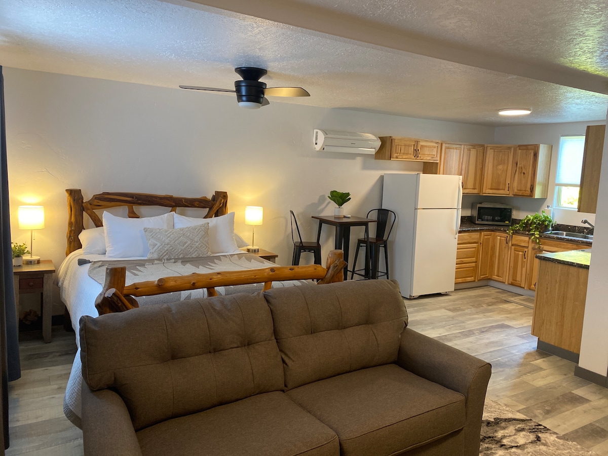 Un lugar ideal para trabajar desde casa o para una escapada. Relájate en una suite separada y tranquila con entrada privada y aparcamiento. Disfruta de la espaciosa suite de 560 pies cuadrados, con una cómoda cama tamaño queen, una cocina pequeña surtida, una gran sala de estar y un baño completo. ¡Lo esencial está aquí y mucho más! Con unas vistas impresionantes de la cordillera Cascade, podrás disfrutar de la belleza de una colorida puesta de sol y, tal vez, ¡ver algo de vida silvestre! A solo 5 minutos de Smith Rock, tiendas de comestibles y restaurantes.