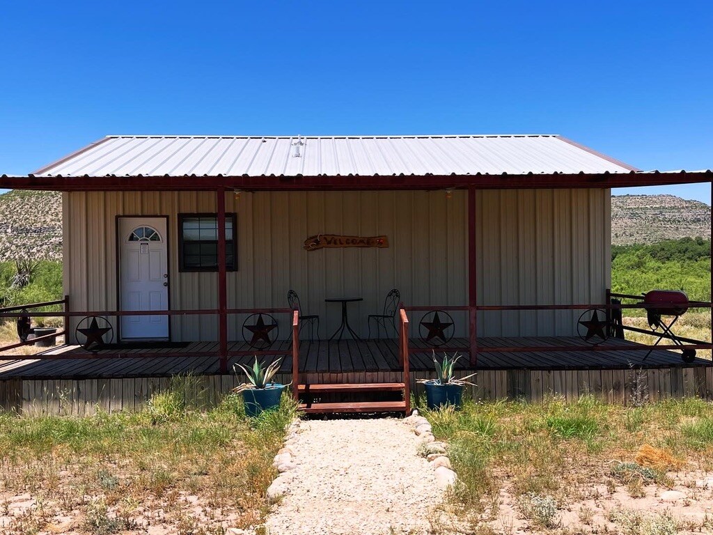 Bienvenido a Jackalope Cabin en la tranquila ciudad de Sanderson, Texas. Esta cabaña única fue construida con cuidado mediante la restauración de un antiguo taller histórico que estaba llegando a sus últimos días. Jackalope Cabin es totalmente funcional y cuenta con todas las comodidades que necesitas para disfrutar de Sanderson y de los alrededores de Big Bend. Siéntate en el porche delantero y disfruta de un desayuno tranquilo y una taza de café caliente. Disfruta del patio trasero vallado, donde hay una parrilla de propano cubierta y un pozo de fuego de leña.