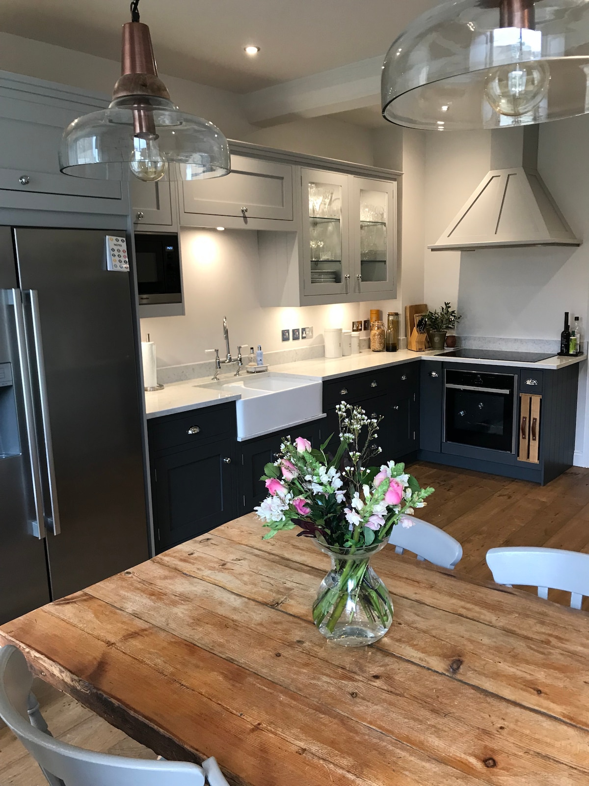 El pajar es muy antiguo, pero lo hemos convertido en una suite de 2 dormitorios (una cama doble y una gran cama redonda en el altillo) con un «baño cobertizo» y un gran salón. Está en la parte superior de nuestra propia casa (encima de la cocina), pero tiene una entrada privada independiente y una puerta que da al jardín. No hay cocina, ¡piensa en habitaciones de hotel en lugar de en cocina americana! Está justo en el corazón del pueblo, a un par de cientos de metros de buenos restaurantes, pubs antiguos y tiendas independientes.