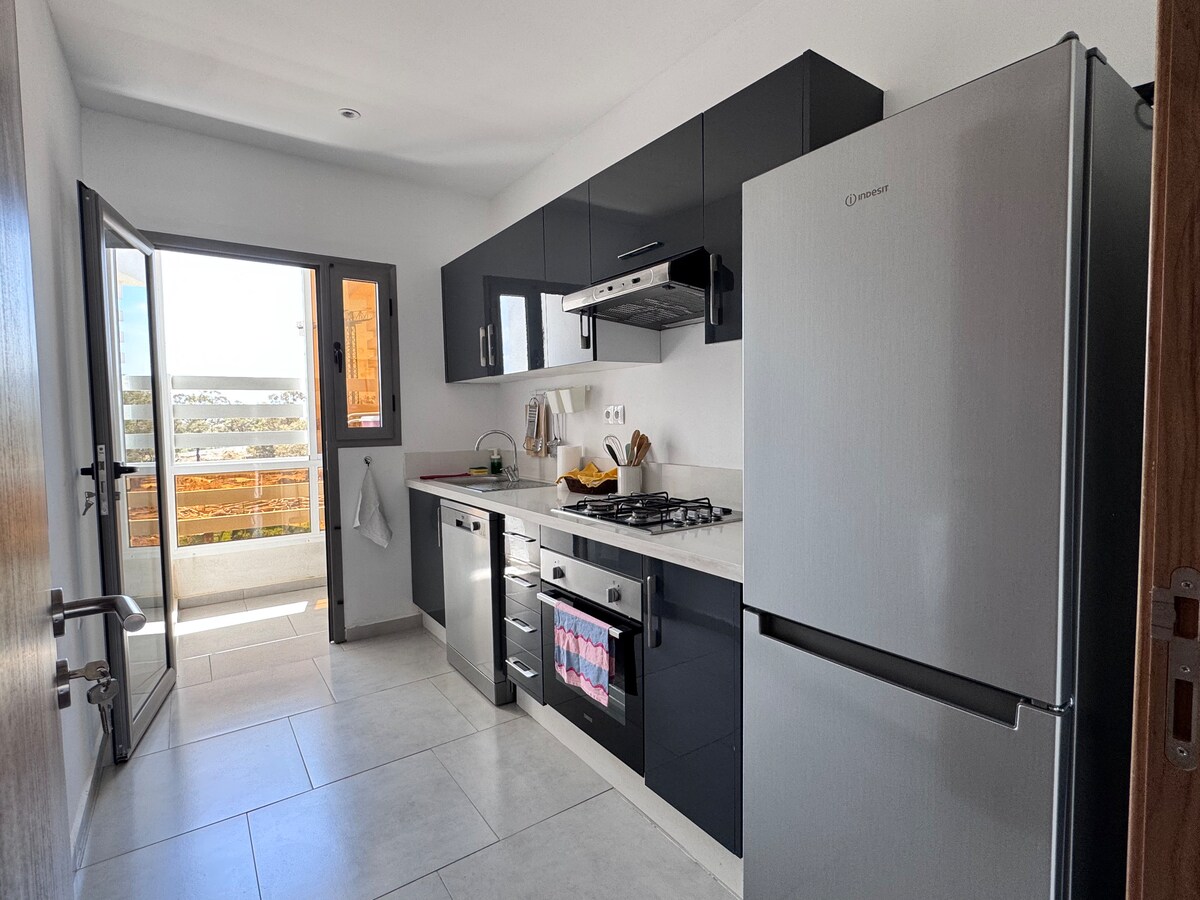 Apartamento moderno con terraza soleada y hermosas vistas a la piscina y al lago. Ubicado en un complejo residencial nuevo con seguridad, piscinas, zonas infantiles y gimnasio. A solo 4 min de las playas de Martil y Cabo Negro, 10 min de M'diq y 15 min del aeropuerto de Tetuán. Cerca de restaurantes, cafés y todos los servicios para unas vacaciones cómodas y relajantes. Apartamento totalmente equipado.