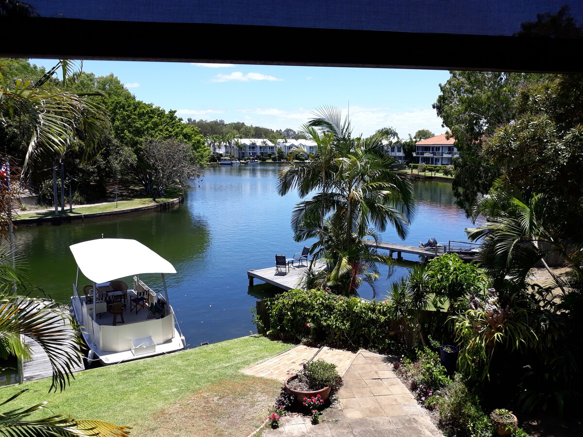 El apartamento de arriba de una residencia de dos pisos, con jardín tropical y embarcadero privado, ubicado en el corazón de Noosaville. Boutiques, cafés, restaurantes, el río Noosa, la playa y el parque nacional están todos cerca. Acceso en barco a la pesca y los deportes acuáticos del río Noosa. El apartamento es solo para uso exclusivo de los huéspedes reservados; no más de dos. No se puede invitar a otros visitantes sin el permiso expreso de los propietarios que viven en el apartamento de abajo.