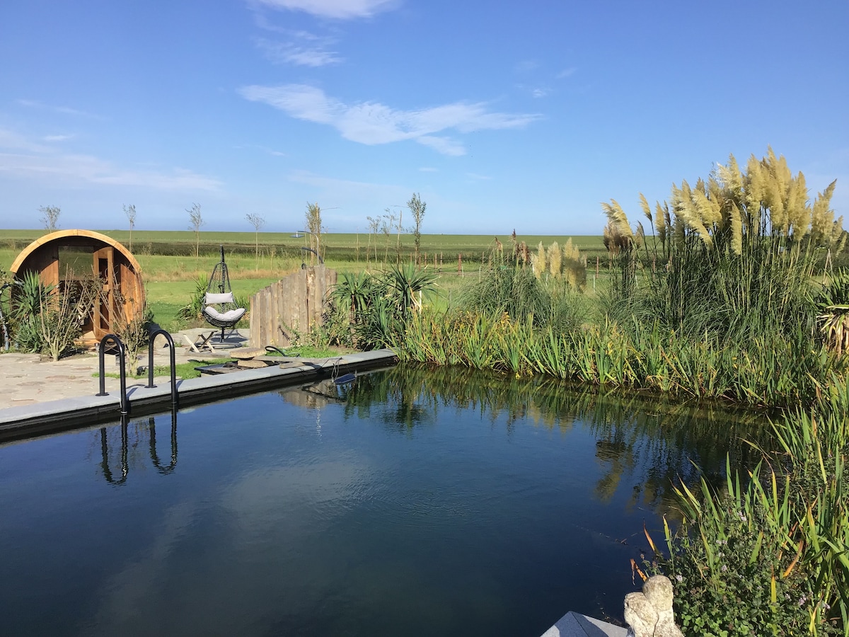 Elegante habitación ubicada justo en una playa de Wadden Sea. ¿Te gusta la naturaleza, la paz y una habitación cómoda? Con amor por los elementos, hemos diseñado esta habitación para ti. Por supuesto, tiene camas de lujo. En el exterior puedes relajarte en tu terraza privada bajo el sol. La habitación tiene un baño privado con ducha de efecto lluvia. Desde tu habitación, caminas sobre el dique hasta una pequeña playa en el Mar de Wadden, donde puedes disfrutar nadando o caminando a lo largo del dique. Número de registro: 0448 0EDA 1A6F 38C5 1E5F