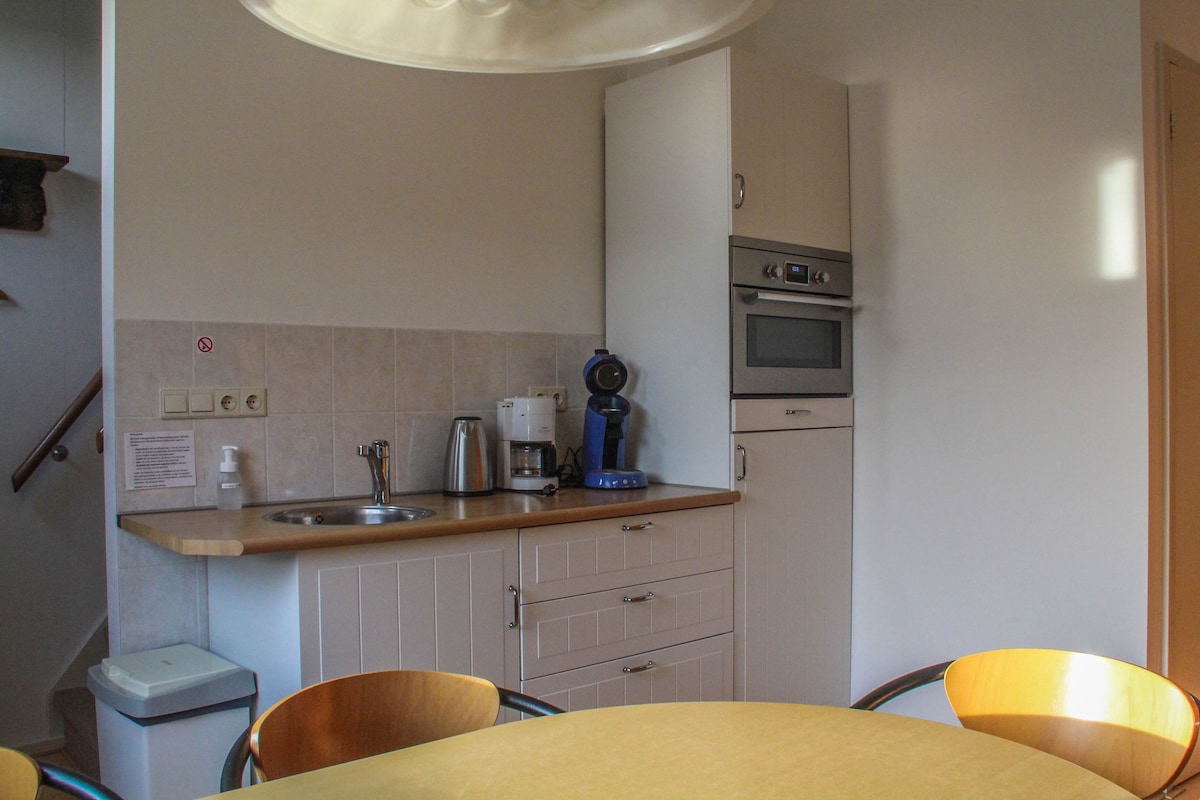 Luxe appartement op paardenpensionstal net buiten Den Burg. De woonkamer heeft een zithoek met tv en een eethoek. De open keuken is luxueus ingericht met koelkast, combi-oven, afwasmachine, Quooker, koelkast met vriesvak, broodrooster, Senseo en inductiekookplaat. Er zijn 2 slaapkamers met heerlijke bedden. De grote badkamer is voorzien van een heerlijke regendouche. Het appartement heeft een eigen privé-tuin. Wij hebben ons huis in 2023 volledig milieuvriendelijk gebouwd met kalkhennep.