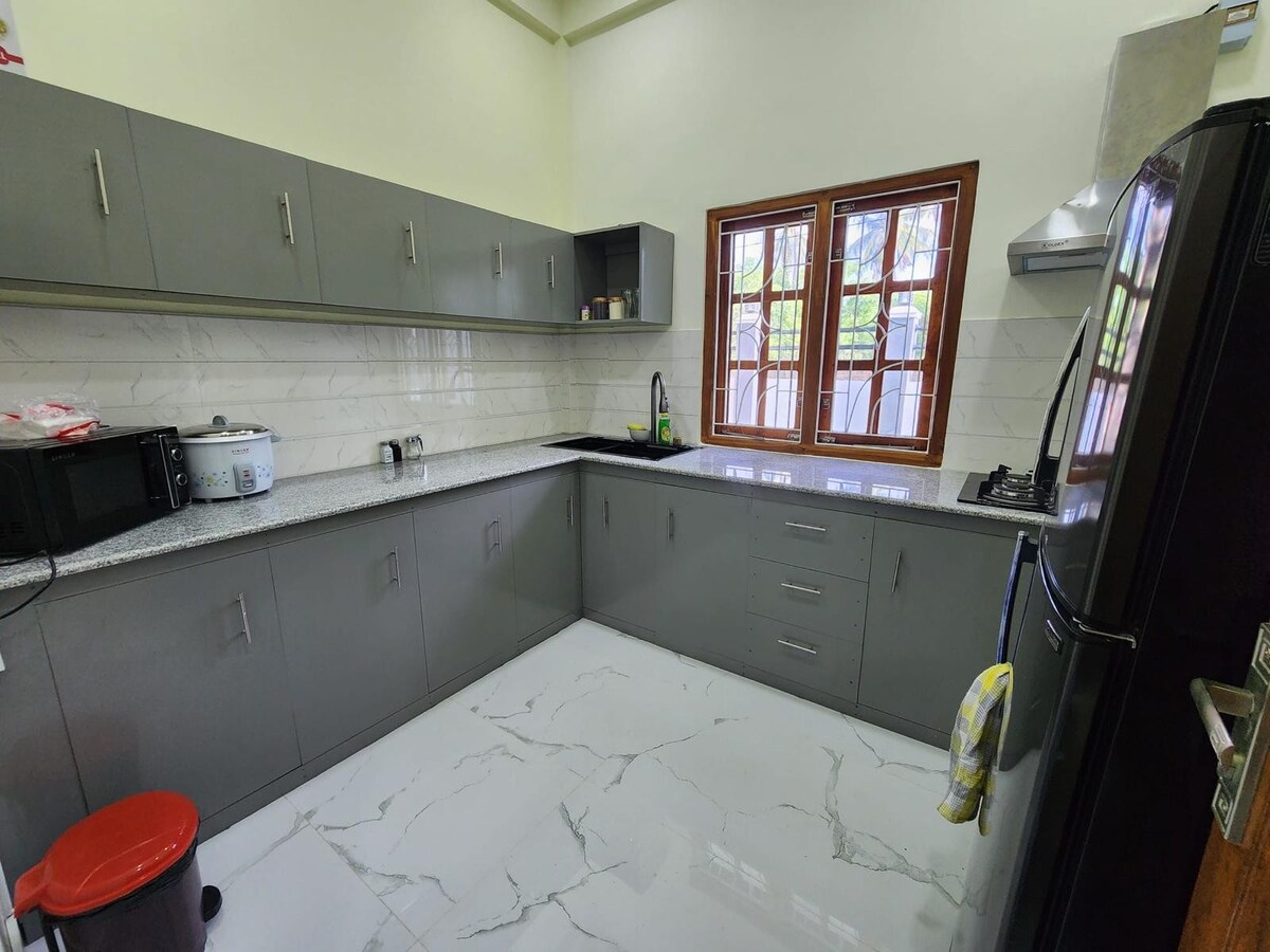 Calm Guest es una opción perfecta para que los visitantes de hasta 10 miembros se alojen en privado y deambulen por las atracciones naturales de la ciudad de Trincomalee, que es una de las principales atracciones turísticas de Sri Lanka. La playa de Trincomalee está a unos 2,5 km o a 5 minutos en tuk tuk de Calm Guest y está situada cerca de la ciudad de Trincomalee, la estación de tren y el lugar turístico de Uppuveli. Esta propiedad totalmente privada con seguridad inteligente y ubicación tranquila hará que tu estancia sea inolvidable. Bienvenido a Calm Guest.