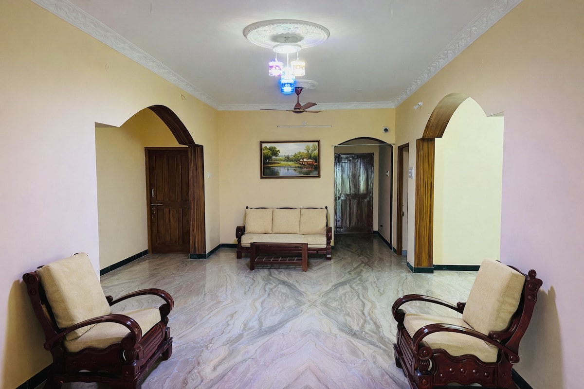 Bienvenido a Green Heaven, tu santuario privado ubicado en el tranquilo y verde corazón de KK Nagar, Trichy. Diseñada para ofrecer comodidad y serenidad, nuestra villa ofrece una experiencia de estancia refrescante rodeada de naturaleza y ambiente tranquilo. Tanto si eres un viajero que busca descanso, una familia de vacaciones o un profesional en una estancia corta, Green Heaven es la opción ideal para disfrutar de mañanas tranquilas y noches acogedoras. Villa ✔ espaciosa y elegante de 2 dormitorios Ven, relájate y siéntete como en casa en el regazo de la naturaleza, solo en Green Heaven.