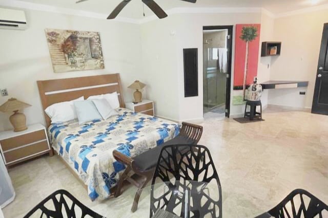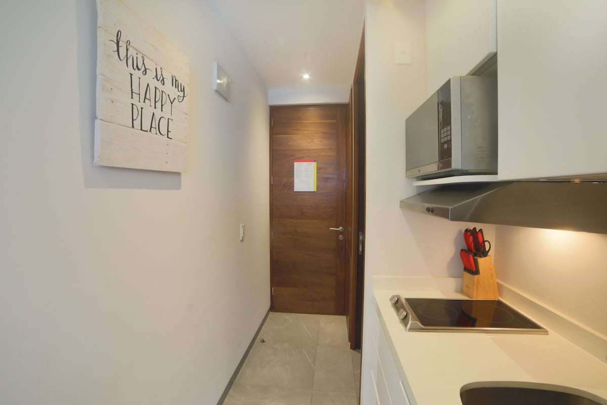 Estudio residencial totalmente equipado con cama tamaño queen, cocina pequeña, baño privado, escritorio y terraza privada ideal para disfrutar de tu café de la mañana. Este estudio te sitúa a poca distancia a pie de la playa y a solo dos manzanas de la vibrante 5ª Avenida, donde encontrarás los restaurantes y supermercados más reconocidos de Playa del Carmen. Este espacio está diseñado para ofrecerte la mejor experiencia de viaje, relajación y disfrute en la Riviera Maya.