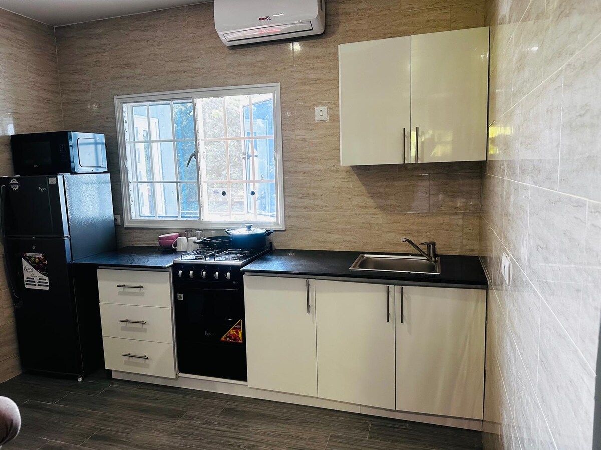 Este alojamiento elegante es perfecto para viajes familiares. Totalmente amueblado con todos los electrodomésticos para su conveniencia. A unos 5 minutos en coche de la playa. A menos de 15 minutos en auto del área de Senegambia. Vecindario tranquilo, tranquilo y familiar. Totalmente cerrado y seguro para garantizar la total privacidad. Electricidad estable y generador de respaldo.