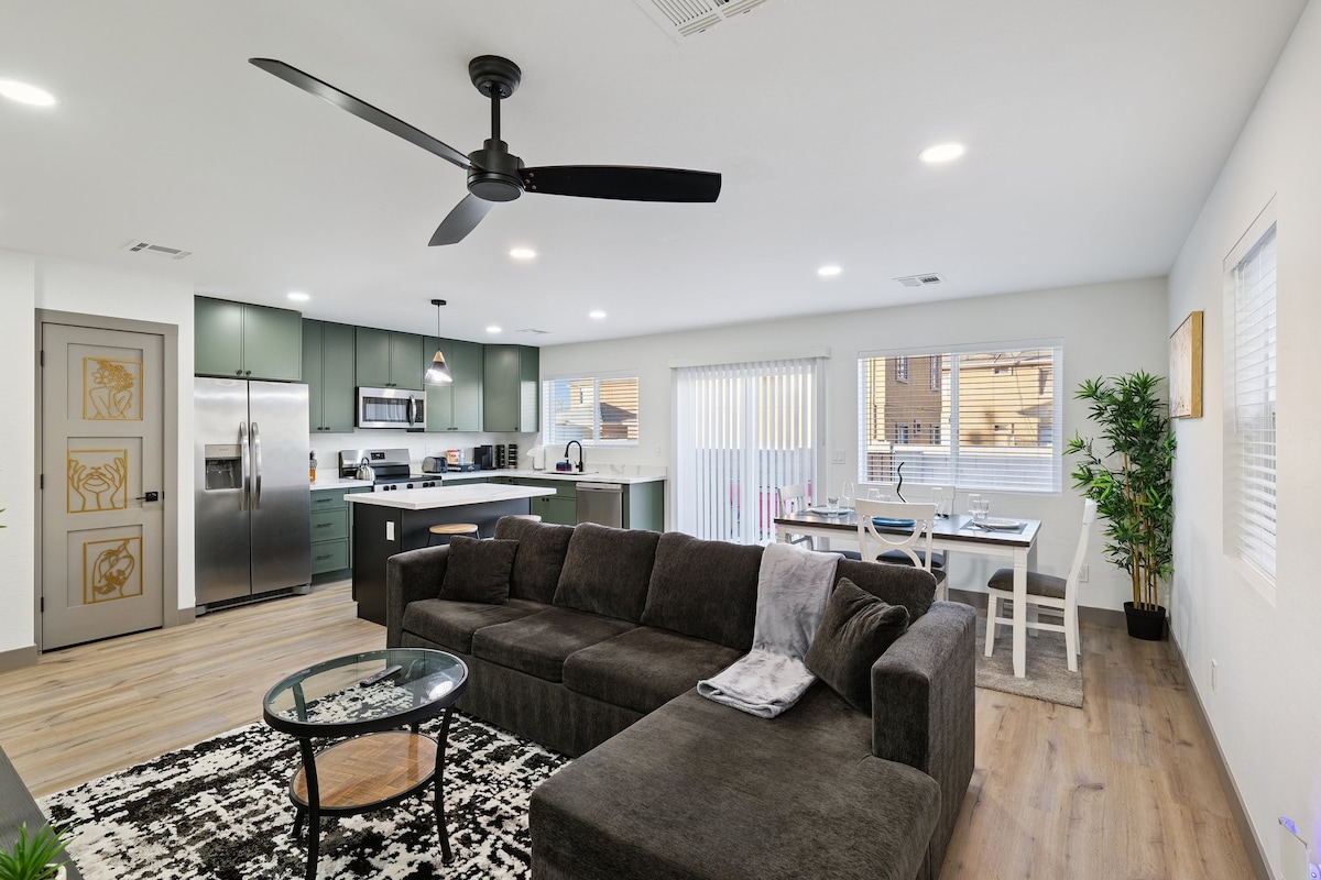 Este 1 dormitorio y 1 baño la suite de invitados tiene techos de 9 pies y está diseñada para la comodidad y el estilo. Te sentirás como en casa con una cocina totalmente equipada y una entrada privada en un barrio tranquilo. Tenemos Starbucks, varios restaurantes, gimnasio, supermercados, centro de la ciudad y el aeropuerto a una corta distancia en coche. Ten en cuenta que hay una casa ocupada que no forma parte de este anuncio. Cuenta con su propia entrada privada