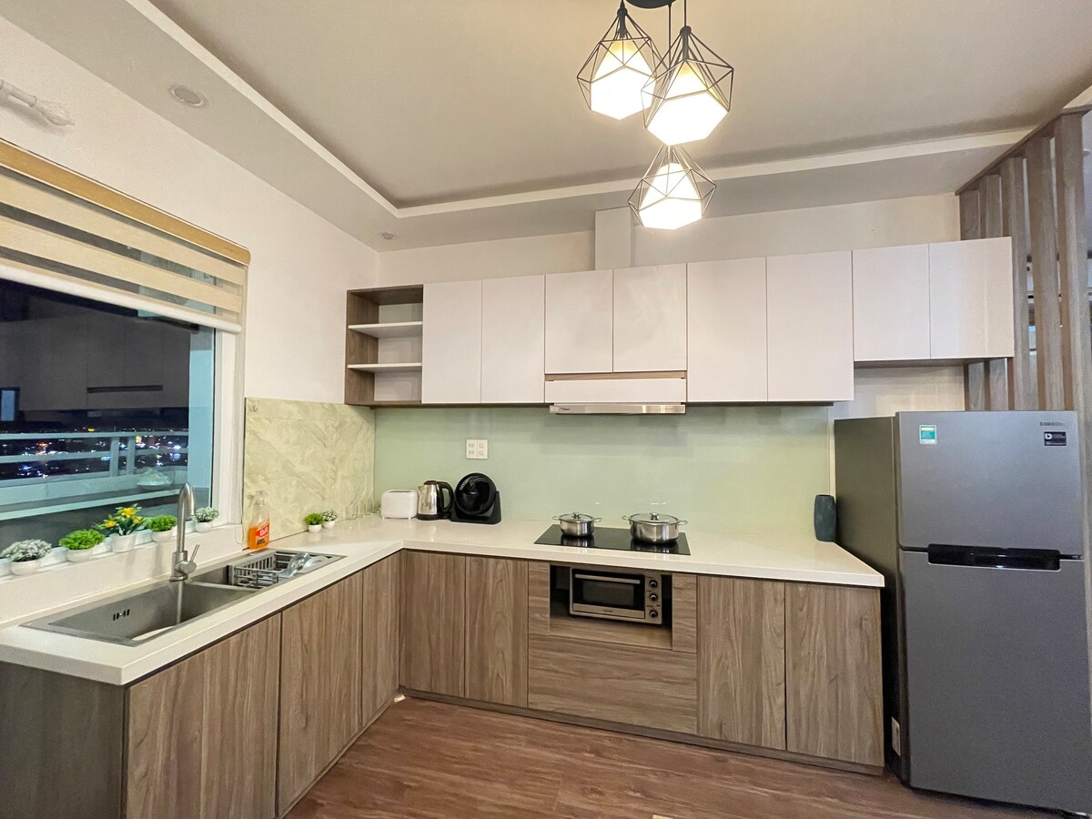Modern, stylish 120m² condo on the 30th floor with stunning views! 3 bedrooms, 4 beds—perfect for families or groups. Located in the heart of Da Nang, just minutes from Han River, Dragon Bridge & APEC Park. My Khe Beach only 9 mins away. Enjoy spacious living, full amenities & access to a shared swimming pool. 🧹 Daily trash removal and towel replacement upon request ★ Panoramic views | Central location | Pool access ✈️ Free airport pick-up from 3 nights.