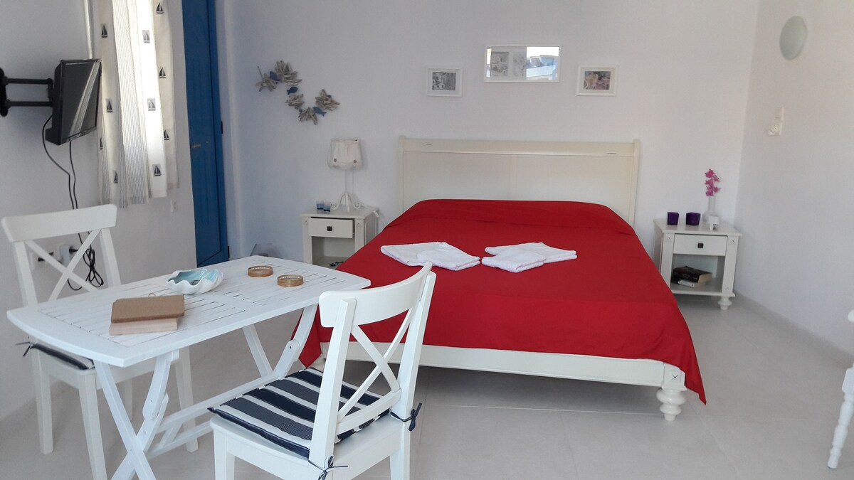 The Oceanos double Studio is a single room studio in Aegiali bay which fits 2 people, 25 square meters. It has a double bed , a kitchenette, a bathroom with a shower and A/C. The Oceanos Studio has a spacouse balcony with a beautiful view over the village and Aegiali bay. Free parking. Within a 10 min walk you are in the center of the lovley village and the wonderful beach of Aegiali bay.