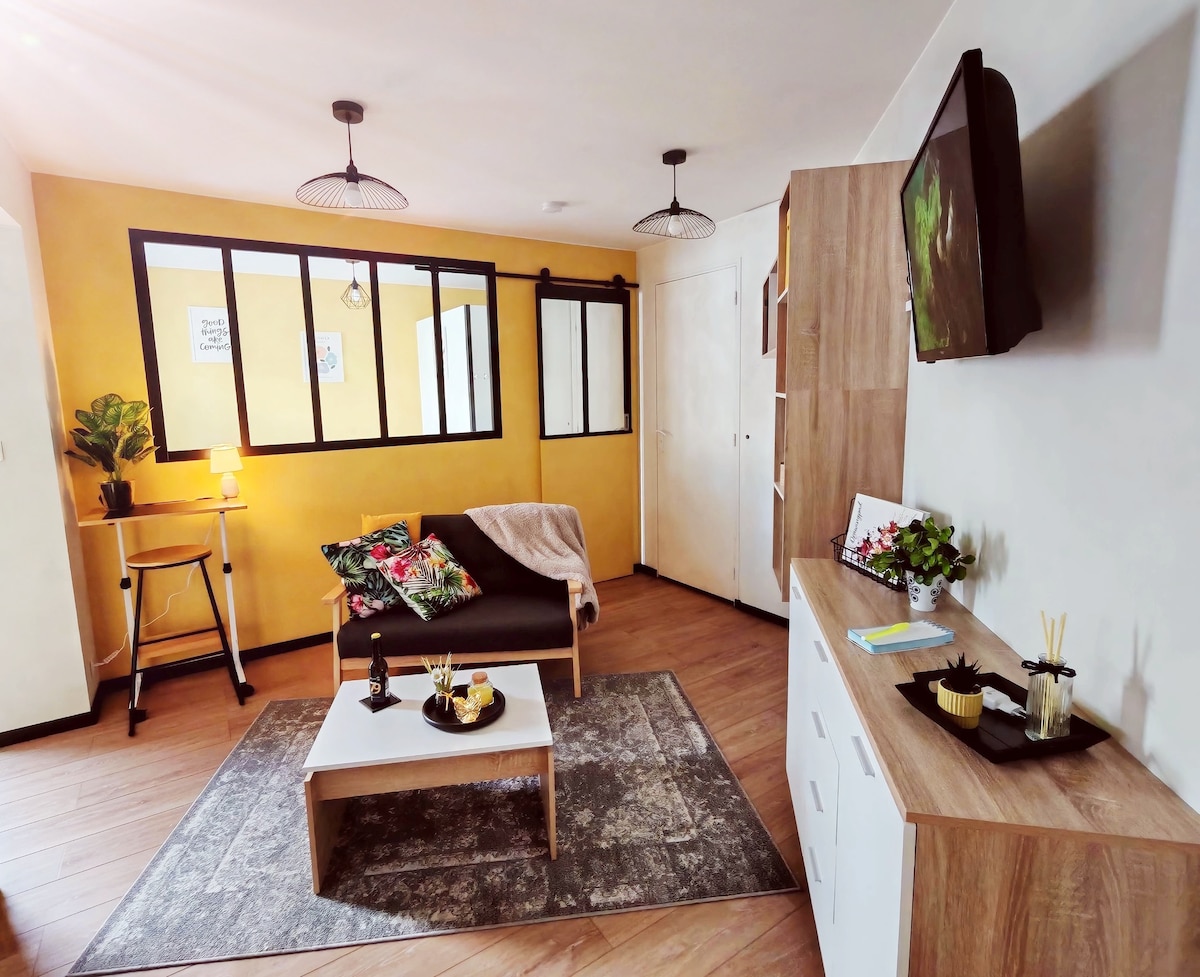 Apartamento nuevo de 42 m² en el primer piso situado en el centro de Thouars, cerca del castillo , tiendas cercanas, restaurantes, mercados, cine, panadería, bar de tabaco.. Se proporcionan ropa de cama, toallas, jabón y champú. El alojamiento se encuentra en: Menos de1 hora de Le Puy du Fou y Futuroscope -30 min de centro parque, Castillo de Saumur, del zoológico ecológico parque de dotado en Anjou. -1h Angers -15 minutos a pie de la estación de tren de Thouars La entrada es segura e independiente