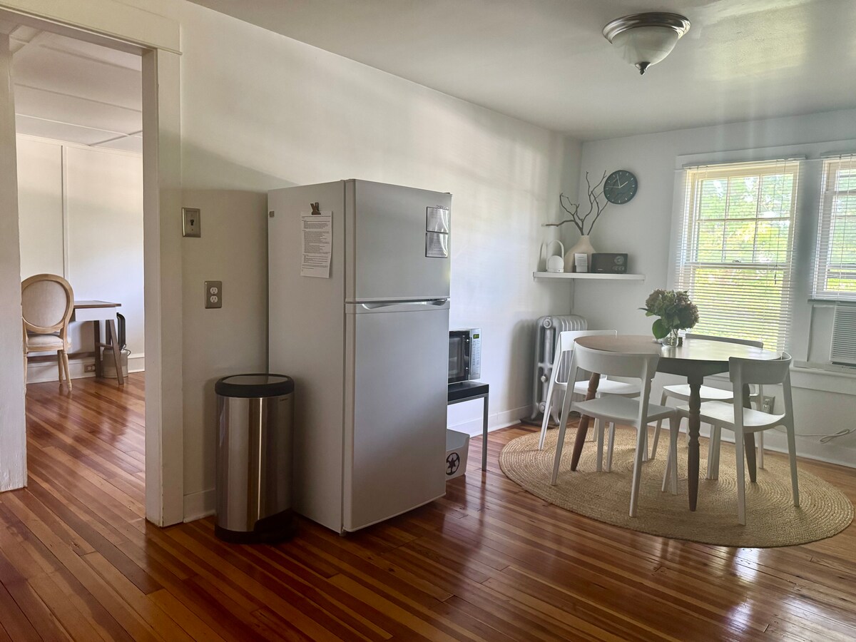 Esta casa dúplex tranquila y céntrica es un refugio maravilloso con un enorme patio trasero compartido con un patio compartido igualmente grande. Relájate en un porche delantero cubierto con asientos para tomar el café por la mañana. Puedes disfrutar de la televisión Fire Stick de 55 pulgadas o cocinar una sopa caliente en una hermosa cocina con un enorme fregadero de un solo lavabo y encimeras de granito y disfrutar de electrodomésticos nuevos. Nos encanta el encanto de los suelos de madera originales restaurados. Siéntete en paz mientras das un paseo relajante por este agradable barrio.