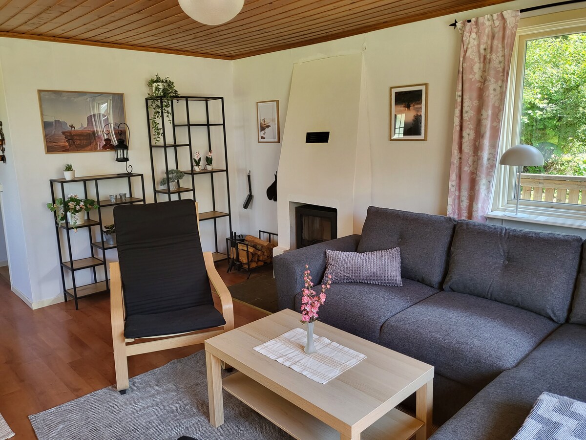 Una casa de verano familiar a poca distancia a pie de nuestro encantador lago Örlen. Hay un dormitorio con una cama doble y también hay un dormitorio más pequeño con dos camas. Encontrarás una silla cama para una persona en la sala de estar. También hay una casa de huéspedes con dos camas tamaño king para usar de mayo a septiembre. Comedor, sala de estar, una cocina más pequeña y un baño grande con ducha. ¡Te damos una cálida bienvenida para que reserves tu estancia!