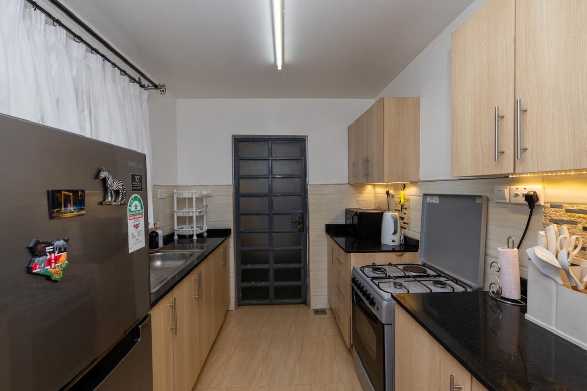 Te damos la bienvenida a “The Green Nook”. Nuestro moderno apartamento de 4 dormitorios en Garden City Residences en Nairobi ofrece una estancia amplia y cómoda con interiores elegantes. Sala de estar de planta abierta, una cocina totalmente equipada y tres dormitorios bien amueblados. Disfruta de servicios como wifi de alta velocidad, estacionamiento seguro, piscina y gimnasio. Estamos ubicados dentro del centro comercial Garden City Mall, está cerca de tiendas, restaurantes y atracciones clave de Nairobi, por lo que es una opción perfecta tanto para viajeros de negocios como de placer.