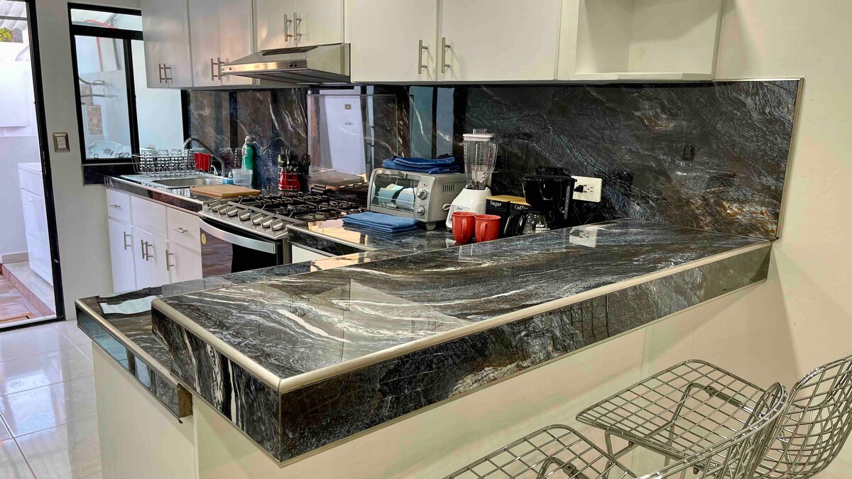 Departamento completo en 2do piso , 2 recamaras , para 4 personas. confortables camas Queen , NO HAY ESTACIONAMIENTO ADENTRO. Por lo que te puedes mover fácil en transporte publico , en Uber o caminando en la zona. Entrada independiente, ubicado en la parte posterior de la casa, bien iluminado a 4 cuadras de la playa. Zona comercial. restaurantes, cafeterías, mercados, bancos, plazas