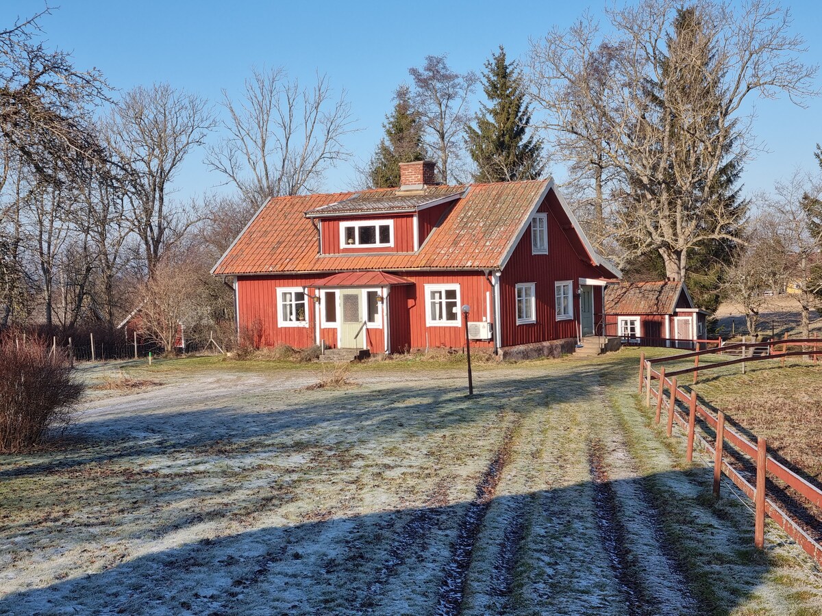 ¡🏡 Bienvenido al campo, sin estar lejos de la ciudad! Acogedora casa de huéspedes en una pequeña granja. 🌲En conexión directa hay acogedores senderos forestales que conducen tanto a la reserva natural de Lunnelid como a Råda Vy, con su hermosa zona al aire libre para practicar senderismo, ciclismo y correr. 🏪A unos 7 km del centro (por la carretera 44 o a través del bosque). 🌅Un buen punto de partida para excursiones de un día a lugares como Hindens Rev, Kinnekulle, Kållandsö y más. 🍀Nuestra propia casa está al lado. ¡Emil y Julia te dan la bienvenida!🙂