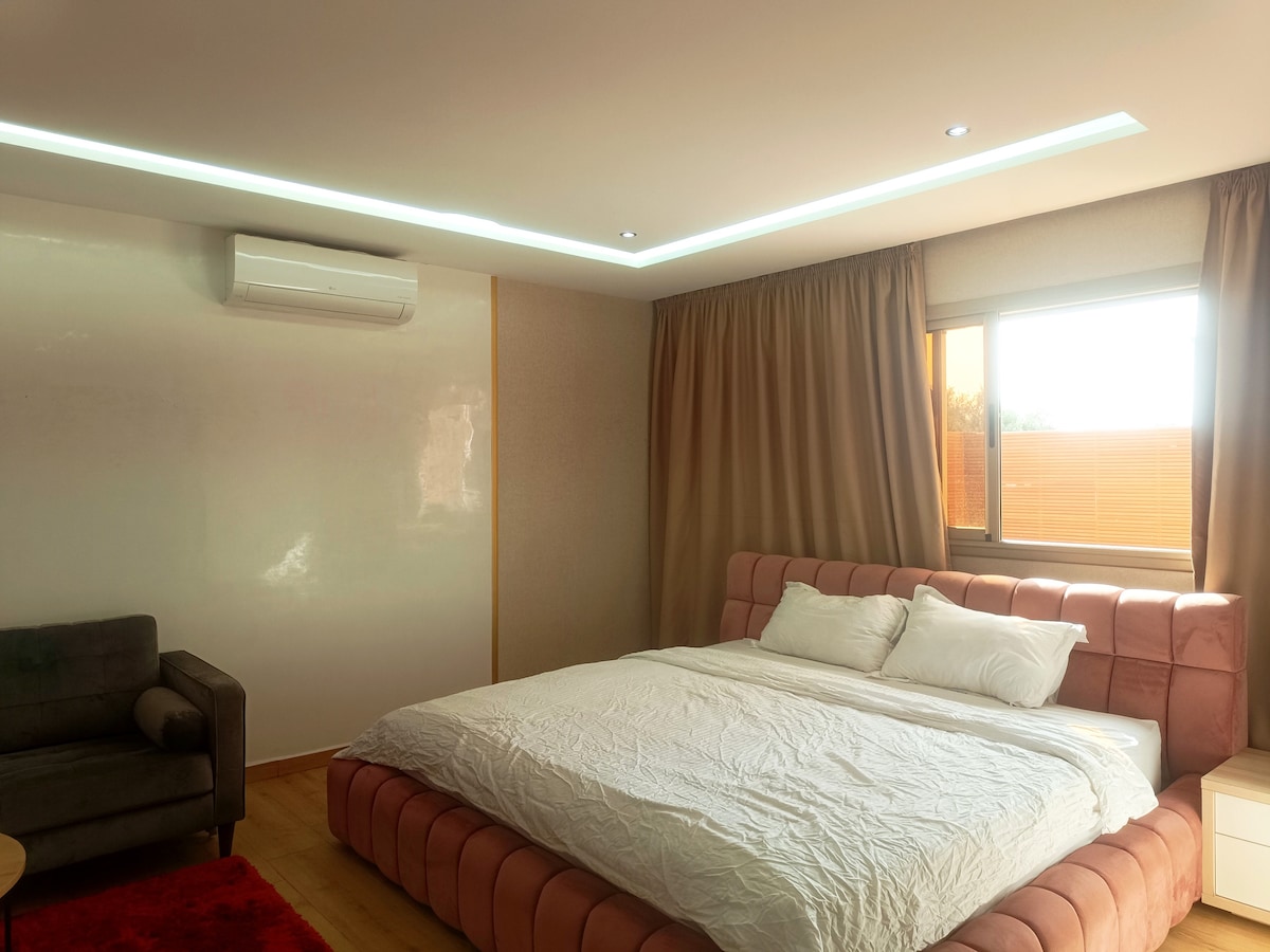 Apartamento elegante y espacioso en Béni Mellal, idealmente situado en una zona segura y tranquila. Este alojamiento de 100 m² consta de 2 dormitorios, 2 baños modernos, una cocina totalmente equipada y una gran sala de estar con TV y Wi-Fi de fibra óptica. Cerca del Carrefour y la carretera de Marrakech, se beneficia de la tranquilidad y al mismo tiempo tiene fácil acceso a los servicios locales. Perfecto para una estadía agradable y acogedora.