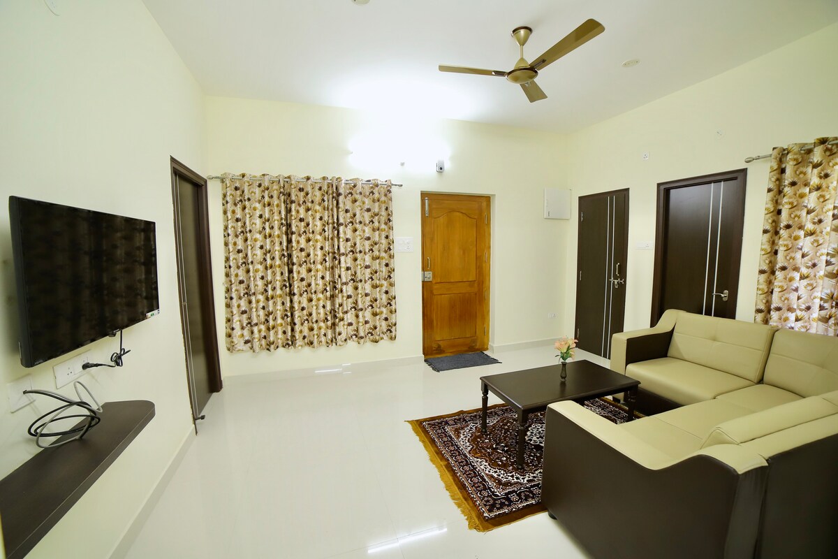 Diviértete con toda la familia en este elegante lugar. Obtienes apartamentos 2BHK Two Side by Side con instalaciones premium ☑️Estacionamiento ☑️inteligente gratuito con cable Dormitorios con☑️ aire acondicionado ☑️ Amplia sala de estar utensilios de☑️ cocina Mesa de☑️ comedor Respaldo de☑️energía de agua☑️ caliente A 🤍2,5 km de la parada de autobuses y la estación de tren. A 🧡2 km del templo Tiruchanoor Padmavathi A 🩵6 km de Alipiri A 🩵3,5 km del templo Govindharaj Swami 🩵A 10 KM del aeropuerto, los huéspedes pueden utilizar el apartamento para varios propósitos, como el turismo, las fiestas de gatito, los placeres de fin de semana.