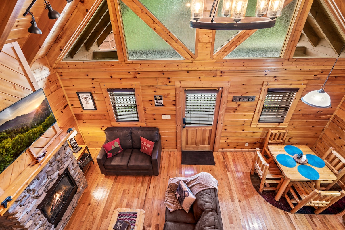 ¡Lujo de cabina elevado con vista a la montaña Smoky!