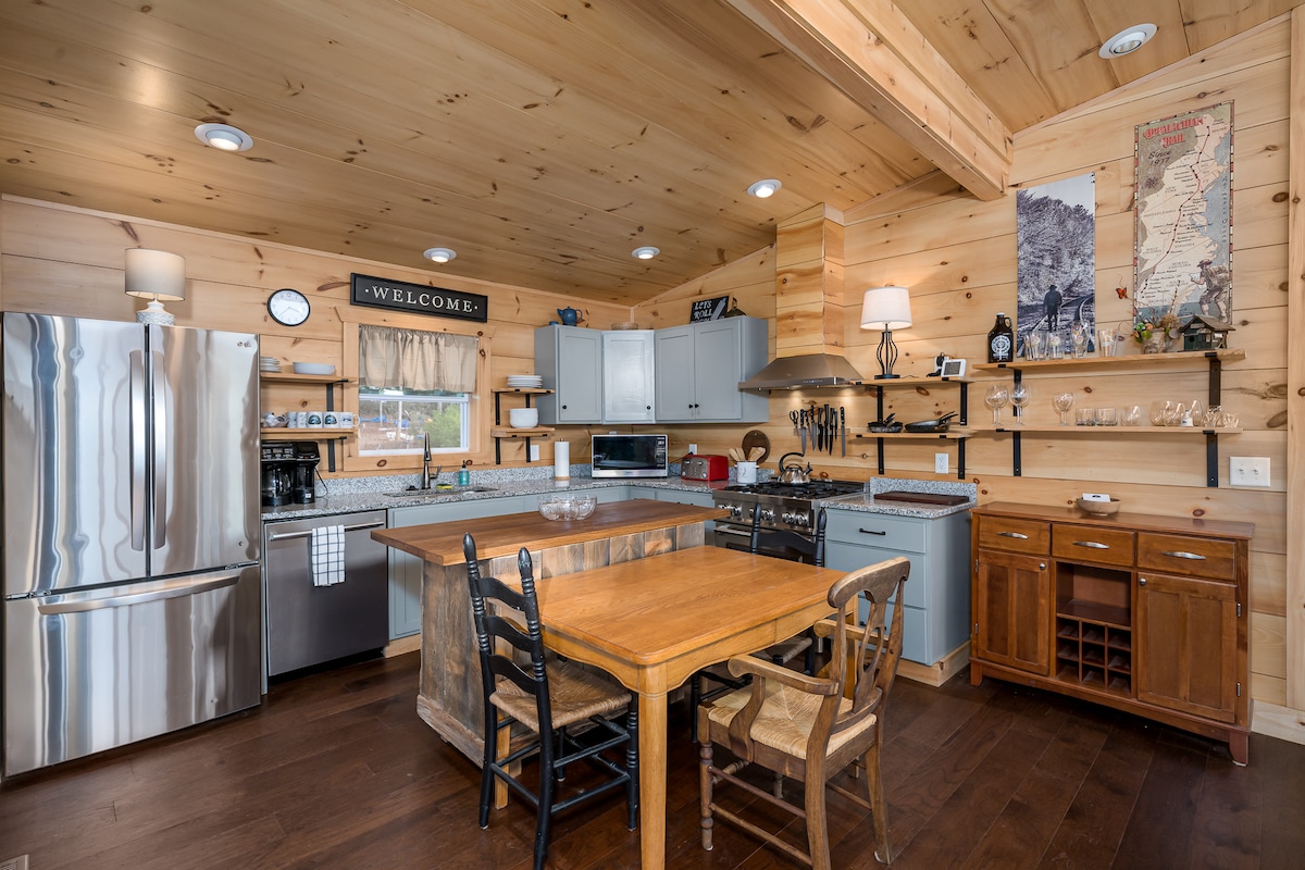 Si la paz, la tranquilidad, la belleza y el romance son algunos de tus deseos o todos tus deseos, ¡nuestra nueva cabaña personalizada fue diseñada pensando en ti! La chimenea transparente, la ducha de triple cabezal, el porche envolvente, los toques más finos, las sábanas y toallas de calidad, el camino sin salida: solo tienes que elegir lo que te apetezca. Este es un diseño personalizado único de Don Gardner y creemos que no querrás irte. Estamos a 1,5 millas del centro de Blue Ridge y a 1,5 millas del lago Blue Ridge.