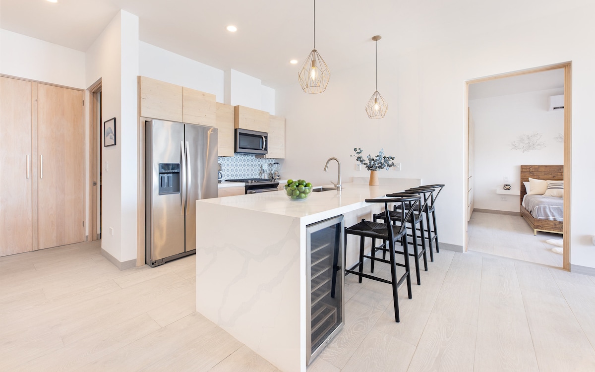 Tu escapada de ensueño frente al mar: moderno y lujoso apartamento de 2 dormitorios y 2,5 baños Ubicado en una tranquila ladera en la zona de Cerritos/Todos Santos, este nuevo apartamento frente al mar de 2024 ofrece una mezcla única de las comodidades de un hotel de alta gama y fácil acceso a las aventuras fuera de lo común de Baja California. Despiértate con impresionantes vistas al mar, saborea puestas de sol épicas desde tu patio privado y date un chapuzón en la piscina junto al acantilado. Disfruta de servicios como un gimnasio completo, una sala de vapor y una terraza para practicar yoga en la azotea. Tu aventura te espera...