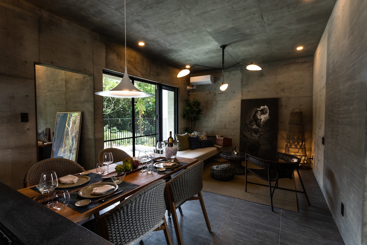 Ambiento Chinen se encuentra en una colina tranquila con vistas al mar de Chinen en la ciudad de Nanjo, a unos 40 minutos en coche del aeropuerto de Naha. Ante sus ojos se extiende el mar azul de Chinen, el más grande de Okinawa, que cambia de color a cada momento. Desde el bosque cercano se escuchan los sonidos de los pájaros y las cigarras, y en el amplio jardín florecen hibiscos y revolotean hermosas mariposas tropicales. Es un paraíso tropical. Desde la ventana se puede ver el mar de coral, el cielo, los barcos flotando en el horizonte, las estrellas y la luna. No me canso de mirarlo durante horas y me doy cuenta de que me siento relajado. Nuestro Airbnb está ubicado en un barrio tranquilo, rodeado de impresionante belleza natural y el mar. Se encuentra a 45 minutos en coche del aeropuerto. ¡Te deleitarás con el canto de los pájaros y la vista de las mariposas retozando en nuestro jardín dependiendo de la temporada!