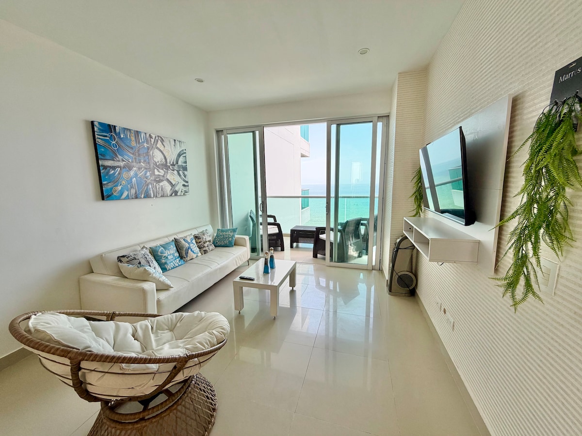 Bienvenido a este encantador apartamento estratégicamente ubicado en primera linea de mar, te ofrece una hermosa vista de las olas y el horizonte, Situado en la mejor zona de Coveñas, Esta diseñado para brindarte comodidad y relajación, con un estilo moderno y toques de calidez playera. Desde el balcón privado, podrás disfrutar de la puestas de sol y el sonido relajante del océano. ¡Prepárate para una experiencia inolvidable frente al mar!
