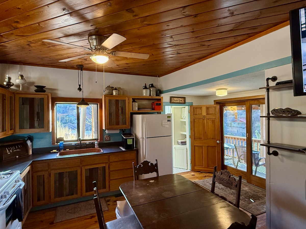 Mountain View Home Cozy, older home with peaceful mountain views—perfect for families and friends. Enjoy outdoor dining, a fenced yard for kids and pets, and amazing star gazing. Sleeps 8 with 1 king, 1 queen, 2 twins, 1 twin bunk (kids only), a full air mattress, and a full and a queen pull-out sofas . Relax on the front porch or gather in the spacious indoor living areas. A warm, welcoming retreat for making lasting memories.