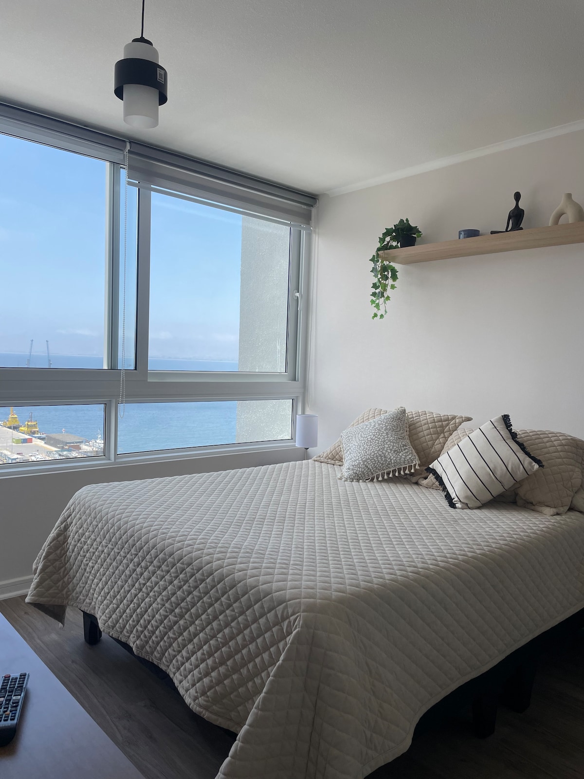 Para descansar o trabajar con la mejor vista y ubicación de La Serena. Precioso y acogedor departamento en primera linea de Avenida del Mar, a pocos pasos de Casino Enjoy y cercano a los mejores restaurant de la ciudad. Totalmente equipado para 4 personas, con estacionamiento privado y todo lo necesario para relajarte y solo disfrutar. Vive el mejor descanso con las mejores comodidades.
