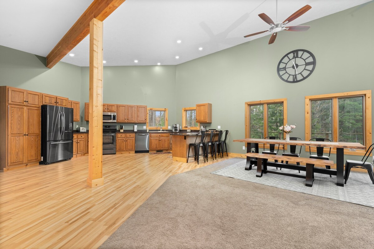 (1-night stay welcome! Rate adjusted for cleaning cost—message me!) Escape to our farmhouse! With a fully fenced backyard, fire pit, and BBQ, it's perfect for outdoor fun. Unwind in the 4-season hot tub room and enjoy all the comforts of home, with everything you need for a delightful stay. Just 5 minutes to beautiful Torch Lake & Rapid River and the charming shops in downtown Alden. This cozy retreat is ideal for a peaceful and convenient getaway, blending relaxation and adventure beautifully.