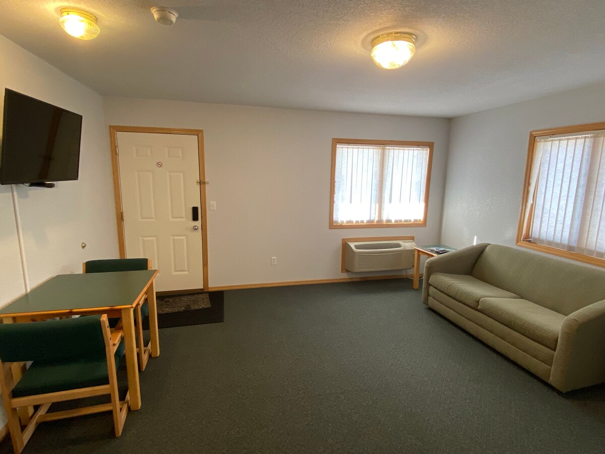 Three Rivers Lodge se encuentra cerca de los ríos Missouri, Niobrara y Keya Paha. Lo que lo convierte en muchos lugares y actividades diferentes. ¡Ofrecemos el uso completo de nuestra cocina que está totalmente surtida, una parrilla de carbón, una parrilla de Traeger, área del patio al aire libre, y mucho más! Si viajas y necesitas un lugar para alojarte, avísanos. Si buscas una estadía larga, ¡te ofrecemos tarifas semanales y mensuales! ¡Llámanos para obtener más información!
