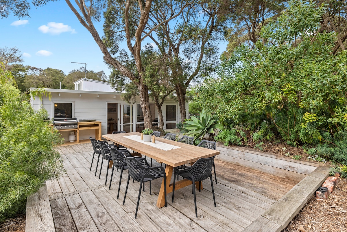 Esta encantadora casa está en un hermoso entorno boscoso cerca del campo de golf Anglesea. Te sentirás inmediatamente relajado a tu llegada, ya que Tree Top Getaway cuenta con todo lo necesario para esas vacaciones familiares o para un fin de semana acogedor. Levanta los talones y disfruta de lo mejor de los arbustos y la playa. La casa cuenta con chimenea, terraza de gran tamaño y cocina moderna totalmente equipada. La casa en sí es perfecta con 2 áreas de estar que permiten a los adultos disfrutar mientras los niños crean su propio entretenimiento.
