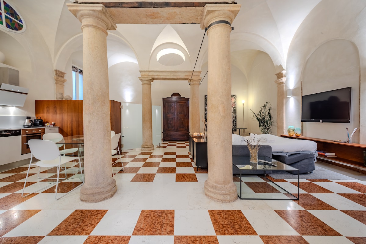 Elegante «loft» de diseño moderno y minimalista, situado en el corazón del centro histórico de Verona, a solo 10 minutos a pie de la Arena, el anfiteatro romano más famoso del mundo. Su ubicación es perfecta para visitar la ciudad: restaurantes auténticos, tiendas características y sus atracciones, todo a dos pasos. Disfruta de la encantadora Ciudad del Amor, sumérgete en su cultura y belleza y respira su mágica atmósfera, como un habitante más, alojándote en una de sus casas más bellas.