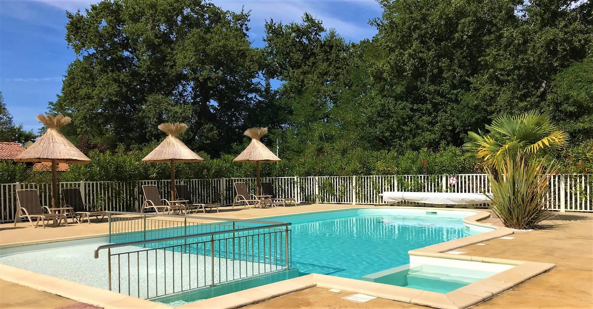 Situado al fondo de un parque residencial tranquilo, lejos de la carretera y en medio de la vegetación, el alojamiento es ideal para una estancia en familia o con amigos. Una piscina común y segura está abierta desde mediados de junio hasta mediados de septiembre. La residencia en una zona tranquila está en el límite de Hossegor, al comienzo de rutas de senderismo en el bosque y carriles bici para el océano. Panadería en el centro del pueblo Comercios a 5 minutos en coche. A 10 minutos de las playas de Hossegor y Seignosse. A 50 minutos de España.
