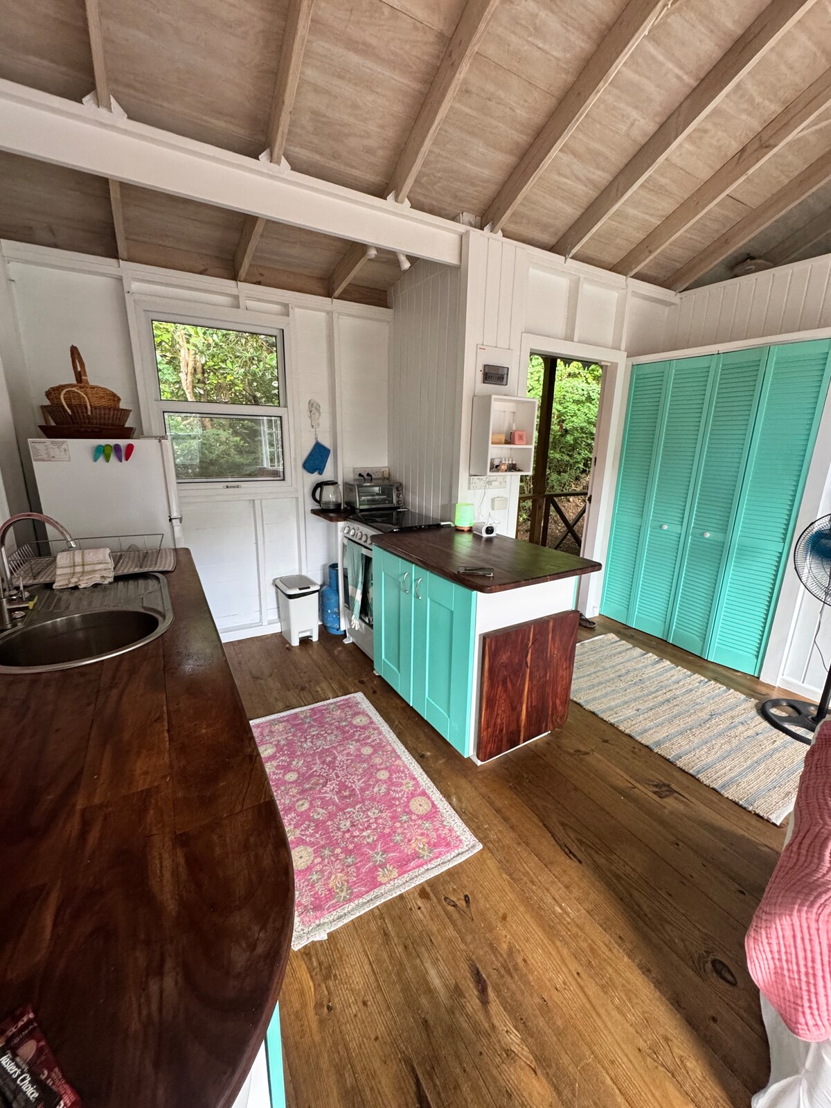 Coconut Cottage fue construida en 2013 por artesanos locales del pueblo de Toucari. La estructura es toda de madera con suelos de baldosas y muchas ventanas para la iluminación natural. ¡Te esperan impresionantes vistas al mar! Hay un corto paseo cuesta abajo hasta una playa encantadora, un restaurante local y un pintoresco pueblo de pescadores. ¡Hacer esnórquel, kayak y natación son solo algunas de las actividades que te esperan! Ubicada a 10 minutos de Portsmouth, donde hay tiendas y servicios @coconutcottagedominica