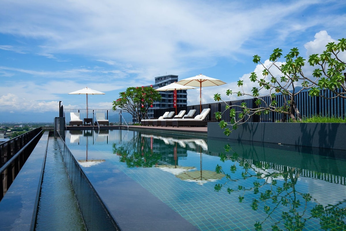 Habitación de estilo lindo con aguas termales @ Yilan Tucheng (1-3 personas) / con utensilios de cocina / balcón con vista a la montaña - vista al amanecer, 15 ping (pis (piscina infinita en la azotea)