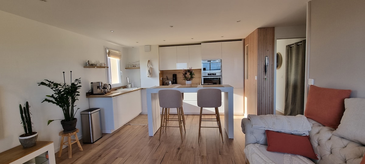 Situado directamente en primera línea de playa, mi apartamento le ofrecerá unas vistas impresionantes de la belleza de la playa. Sin carretera frente a usted, sin vecinos, ¡se puede acceder a la playa inmediatamente por una escalera y su terraza! Un verdadero nidito acogedor, con todas las comodidades modernas para hacer su estancia muy agradable. ¡Su terraza en el dique y su plaza de aparcamiento frente al apartamento completarán su felicidad!