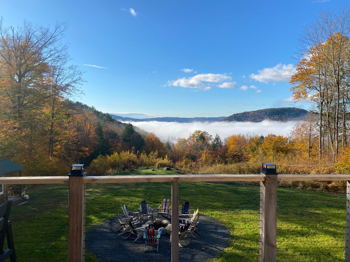 La casa de campo con vistas a la cumbre cuenta con 3 acres en las hermosas montañas verdes, estamos a 1700 pies de altura. En esta cabaña de nueva construcción que ADMITE MASCOTAS, tendrás 3 dormitorios y 2 baños completos, con capacidad para 7 personas cómodamente. ¡Tenemos un JACUZZI para 6 personas totalmente nuevo! Estarás a 15 minutos de la mundialmente famosa montaña Stratton, a 15 minutos de la montaña Bromley y a 4 minutos de la montaña Magic local. Muy cerca de la ciudad de Manchester, que tiene excelentes tiendas y restaurantes.